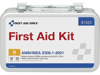 First Aid Only Metal First Aid Kit, ANSI 2021 Class A, 10 People, 76 Pieces (91323)