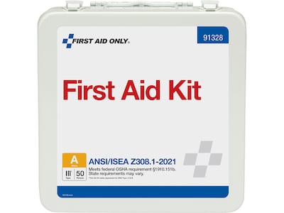 First Aid Only Metal First Aid Kit, ANSI 2021 Class A, 50 People, 184 Pieces (91328)