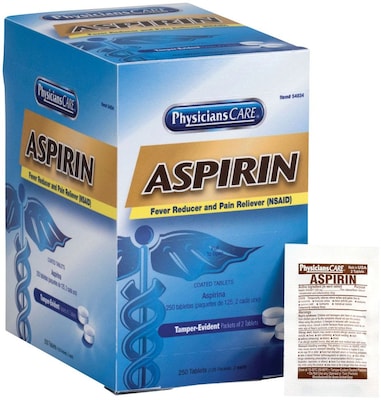 First Aid Only® PhysiciansCare® Aspirin, 2 Tablets/Packet, 125 Packets/Box (54034)