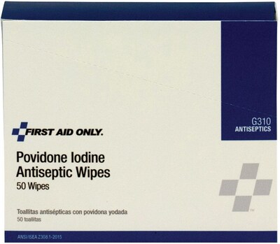 First Aid Only Povidone-Iodine Infection Control Wipes, 50/Box (G310)
