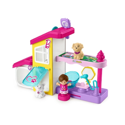 - Barbie-themed Little People pet care playset with 2 floors of play for toddler-friendly pretend play!