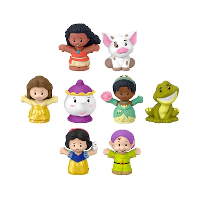 Young Disney fans can act out fun stories with their favorite Disney Princess characters with this adorable Little People Story Duos Figure Pack from Fisher-Price. This gift set features 8 Little People figures styled like Disney Princess characters and their best friends, including Moana and Pua, Belle and Mrs. Potts, Tiana and Naveen, and Snow White and Dopey. Kids will love imagining fun stories with these Disney Princess besties! Colors and decorations may vary.