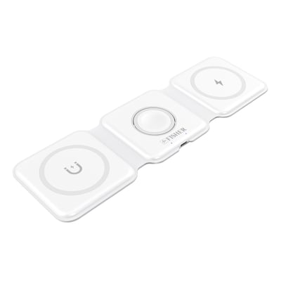 Fisher Tech Essentials Magnetic 3-in-1 Foldable Wireless Charging Pad, 15W, 4-ft., White (FWIC285W)
