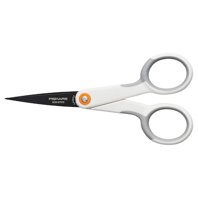 Fiskars® SoftGrip® Nonstick Scissors help to elevate your creativity by providing unique design and blade coating for intricate cuts on sticky materials. Micro-Tip® blades provide superior accuracy. Non-stick blade coating makes clean cuts through sticky materials that tend to gum up like tape, vinyl, stickers and glue. High-grade stainless steel blades are precision-ground to cut all the way to the tip. Double-loop SoftGrip® handle provides excellent comfort and control for right- and left-handed users.