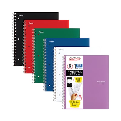 Five Star 1-Subject Notebooks, 8.5" x 11", College Ruled, 100 Sheets, Assorted Colors, 6/Pack (MEA38052)