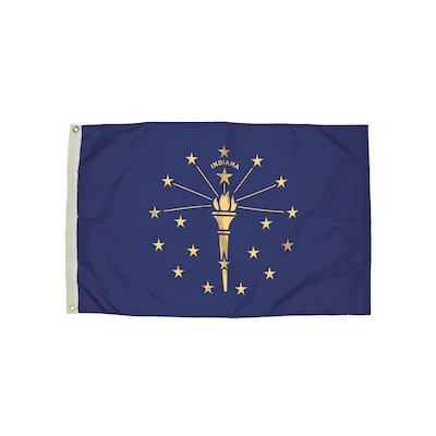 The Flagzone Indiana State flag measures 3' x 5' and easily withstands any outdoor conditions. Made of nylon for long-lasting strength, it is finished with polyester header and brass grommets for mounting on most flagpoles.