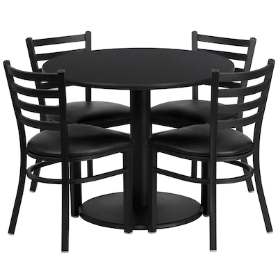 Flash Furniture 36'' Round Black Laminate Table Set W/4 Ladder Back Black Vinyl Seat Chairs (RSRB1029)