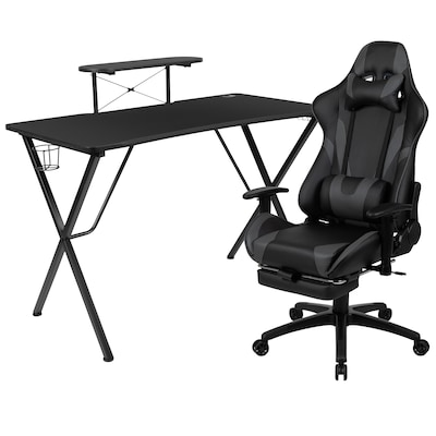 Flash Furniture 52"W Gaming Desk with Gray Reclining Gaming Chair with Footrest, Black (BLNX30RSG1031GY)