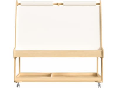 This Flash Furniture Bright Beginnings commercial-grade mobile art center for four is a perfect addition to any classroom. The easel features locking caster wheels for safety and includes magnetic chalkboard and whiteboard surfaces.