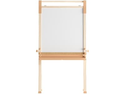 This Flash Furniture Bright Beginnings commercial-grade freestanding plywood art easel features a double-sided design with a chalkboard, dry-erase board, and a paper roller with tear bar. Makes a perfect addition to any classroom.