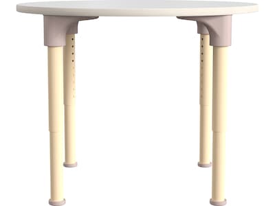- Commercial-grade height-adjustable round classroom activity table that can serve as a play, dining, or craft space