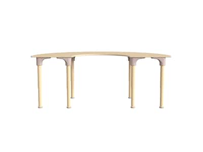 - Commercial-grade height-adjustable semicircle classroom activity table that can serve as a play, dining, or craft space