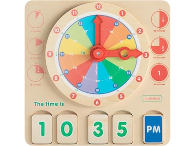 This Flash Furniture Bright Beginnings telling time learning board with digital and analog readings is perfect for freestyle floor play or activity tables. The clock board helps build multiple cognitive and fine motor skills.