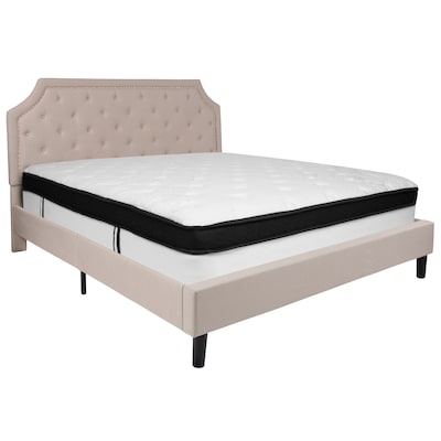 Flash Furniture Brighton Tufted Upholstered Platform Bed in Beige Fabric with Memory Foam Mattress, King (SLBMF4)