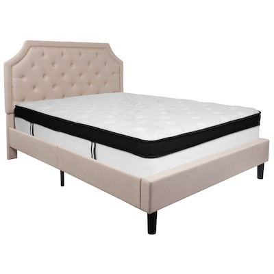 Flash Furniture Brighton Tufted Upholstered Platform Bed in Beige Fabric with Memory Foam Mattress, Queen (SLBMF3)