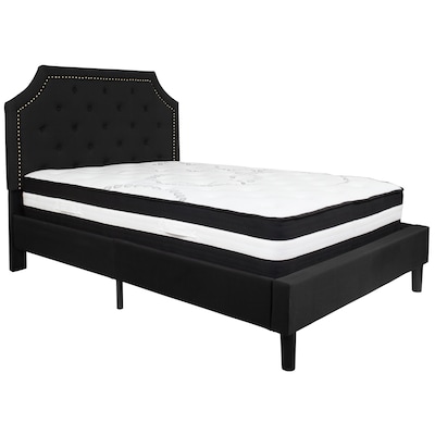 Flash Furniture Brighton Tufted Upholstered Platform Bed in Black Fabric with Pocket Spring Mattress, Full (SLBM6)