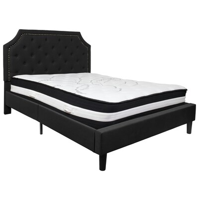 Flash Furniture Brighton Tufted Upholstered Platform Bed in Black Fabric with Pocket Spring Mattress, Queen (SLBM7)