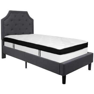 Flash Furniture Brighton Tufted Upholstered Platform Bed in Dark Gray Fabric with Memory Foam Mattress. Twin (SLBMF13)