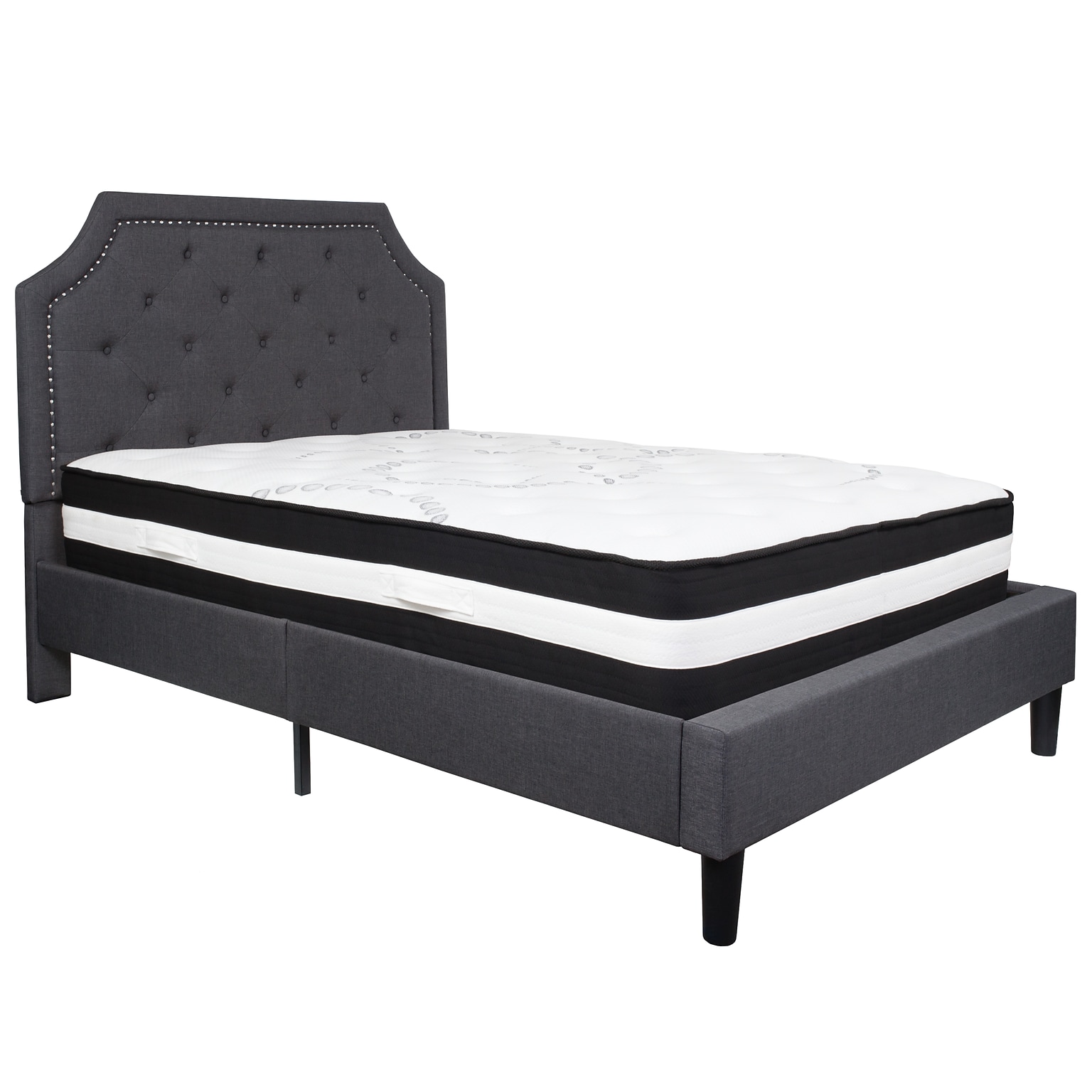 Flash Furniture Brighton Tufted Upholstered Platform Bed in Dark Gray Fabric with Pocket Spring Mattress, Full (SLBM14)