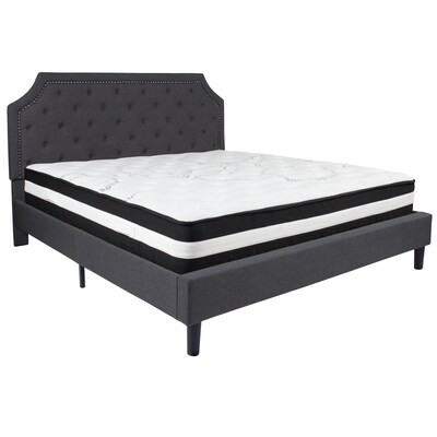 Flash Furniture Brighton Tufted Upholstered Platform Bed in Dark Gray Fabric with Pocket Spring Mattress, King (SLBM16)