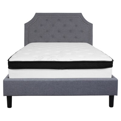 Flash Furniture Brighton Tufted Upholstered Platform Bed in Light Gray Fabric with Memory Foam Mattress, Full (SLBMF10)