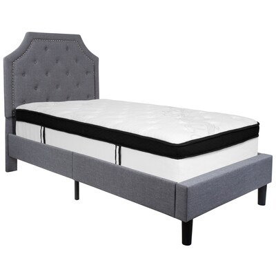 Flash Furniture Brighton Tufted Upholstered Platform Bed in Light Gray Fabric with Memory Foam Mattress, Twin (SLBMF9)