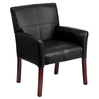 Add class to your waiting room with this executive leather reception chair. The padded seat and mid-rise back provide maximum comfort, while the fixed armrests create space between each guest and provide support while reading books or magazines. Easily clean the chair with soap and water when needed thanks to the rich leather upholstery. Box-stitching in the leather and mahogany legs provide a stylish look, while the traditional style lets the chair pair well with many other styles of furniture. Weighing just over 30 pounds, this Flash Furniture executive leather reception chair is strong enough to hold 250 pounds but still light enough to move as needed.