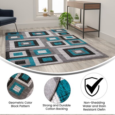 Order Flash Furniture Gideon Collection Olefin and Cotton 84" x 60" Rectangular Machine Made Rug, Turquoise/Gray/White (OKH7146AT57T) today at Quill.com and get fast shipping. Stack coupons to get free gifts & extra discounts!