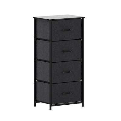 Get much needed storage at an economical price with this 4 drawer vertical organizer. Whether you need a place for laundry supplies, washcloths, or charging cords and remote controls, the four easy pull fabric drawers with wooden handles are a perfect solution. Use this vertical storage tower as a nightstand to hold your cell phone, glasses, or nighttime glass of water. The engineered wood top and powder coated cast iron frame of this dresser provide a stable, hard surface to set books, lamps, or a vase of fresh flowers and holds up to 40 lbs. static weight. Non-Woven fiber drawers are fade and stain resistant. Quick and easy assembly can be achieved in 10 minutes or less. Plastic adjustable floor glides protect your hard flooring surfaces and provide a stable platform on uneven flooring surfaces. Quickly remove spills with a clean dry cloth.