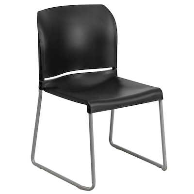 Flash Furniture HERCULES Series Plastic Contoured Stack Chair with Sled Base, Black/Gray (RUT238ABK)