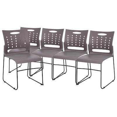 Flash Furniture HERCULES Series Plastic Sled Base Stack Chair with Air-Vent Back, Gray, 5 Pack (5RUT2GYBK)