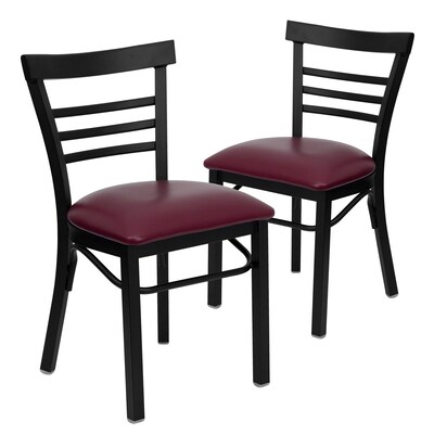 Flash Furniture Hercules Traditional Vinyl & Metal Ladder Back Restaurant Dining Chair, Burgundy, 2/Pack (2XU6Q6B1LADBRV)