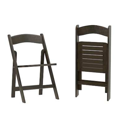 Dazzle your friends and family during your next dinner party or deliver a warm, inviting presentation to your business with this set of two wood folding chairs that combines sophistication with functionality, enhancing any room or event space. The perfect fit for your kitchen or dining room at home, these chairs are also commercial grade, so you can rely on their versatile design to bring style and comfort to your restaurant, bar, bistro, lounge, coffee shop, café, deli, or event space. Crafted from solid beechwood with a mortise and tenon construction, these chairs are durable and stable. The curved backs provide comfort for extended periods. An easily foldable design allows for simple, space-saving storage and portability. Each chair boasts a static weight capacity of 300 lbs. Fixed floor glides protect your hard flooring surfaces from damage. No assembly required. Clean up is a breeze by wiping with a damp cloth.