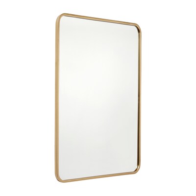 Instantly refresh any room in your home with this 24" x 36" rectangular wall mount mirror. The modern design boasts a slim, matte gold metal frame that lends an up-to-date look to almost any decor. HD glass with real silver backing provides high reflectivity for a distortion-free image. Safety minded for today's busy households, the shatterproof backing technology ensures the glass stays put in the frame when breakage occurs to prevent cuts to children or pets. The waterproof and rust-resistant design make this large mirror ideal for use in high humidity areas such as bathrooms, kitchens, and sheltered balconies. Hang this accent mirror vertically or horizontally to suit your personal taste with the included mounting hardware. Wipe clean with a damp cloth to keep your new mirror looking great.