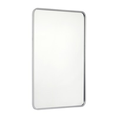 Instantly refresh any room in your home with this 24" x 36" rectangular wall mount mirror. The modern design boasts a slim, matte silver metal frame that lends an up-to-date look to almost any decor. HD glass with real silver backing provides high reflectivity for a distortion-free image. Safety minded for today's busy households, the shatterproof backing technology ensures the glass stays put in the frame when breakage occurs to prevent cuts to children or pets. The waterproof and rust-resistant design make this large mirror ideal for use in high humidity areas such as bathrooms, kitchens, and sheltered balconies. Hang this accent mirror vertically or horizontally to suit your personal taste with the included mounting hardware. Wipe clean with a damp cloth to keep your new mirror looking great.