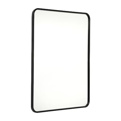Instantly refresh any room in your home with this 40" x 30" rectangular wall mount mirror. The modern design boasts a slim, matte black metal frame that lends an up-to-date look to almost any decor. HD glass with real silver backing provides high reflectivity for a distortion-free image. Safety minded for today's busy households, the shatterproof backing technology ensures the glass stays put in the frame when breakage occurs to prevent cuts to children or pets. The waterproof and rust-resistant design make this large mirror ideal for use in high humidity areas such as bathrooms, kitchens, and sheltered balconies. Hang this accent mirror vertically or horizontally to suit your personal taste with the included mounting hardware. Wipe clean with a damp cloth to keep your new mirror looking great.
