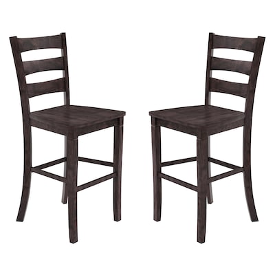 Flash Furniture Liesel Rustic Solid Wood Ladder Back Bar Height Stool, Gray Wash Walnut, 2 Pieces (ESSTBN529GY2)