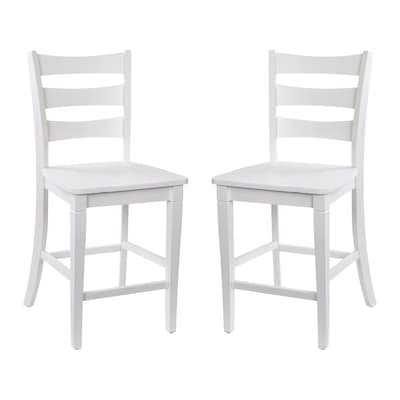 Flash Furniture Liesel Rustic Solid Wood Ladder Back Counter Height Stool, Antique White Wash, 2 Pieces (ESSTBN524WH2)