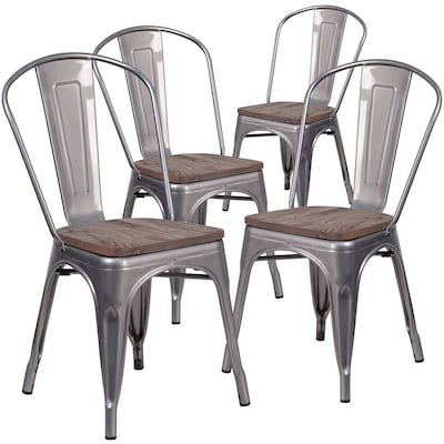 Flash Furniture Lincoln Contemporary Metal/Wood Stackable Dining Chair, Clear Coat, 4/Pack (4XUDGTP001W)
