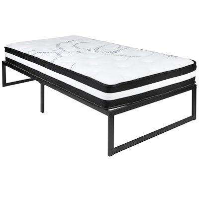 Flash Furniture Louis 14 Inch Metal Platform Bed Frame with 10 Inch Pocket Spring Mattress, Twin (XUBD1000110PSMT)