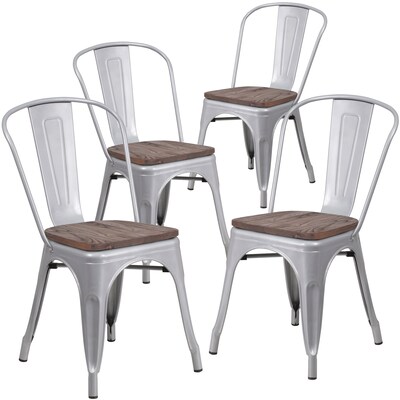 Flash Furniture Luke Contemporary Metal/Wood Stackable Dining Chair, Silver, 4/Pack (4CH31230SILW)