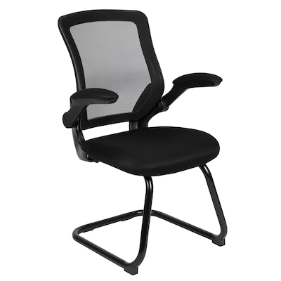 Improve the look in your office with guest seating to please all visitors. When you have in-office meetings be confident in the selection of seating that you've chosen, this cantilever base side guest chair will uplift any decor. Create a professional meeting space in the office by pairing two mesh guest chairs with a table. For longer than expected meetings, your guests won't notice the time passing sitting on the contoured padded seat with waterfall edge coupled with the ventilated mesh back to keep everyone cool. Padded flip-up arms accommodate users who prefer an armless chair and those who want to comfortably rest their forearms during conference meetings. Set an inviting tone with seating that reflects comfort, style and durability. You will not be disappointed in your purchase, buy a pair of sled base mesh guest chairs for your office or reception area today.