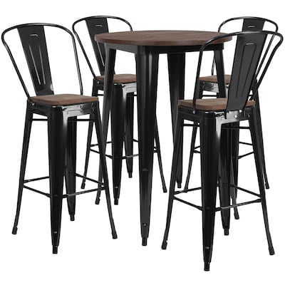 Flash Furniture Metal/Wood Restaurant Bar Table Set, 42H, Black (CHWDTBCH25)