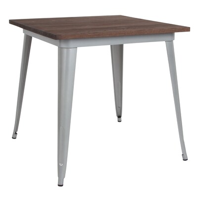 Flash Furniture Metal/Wood Restaurant Dining Table, 30.5"H, Silver (CH5104029M1SIL)