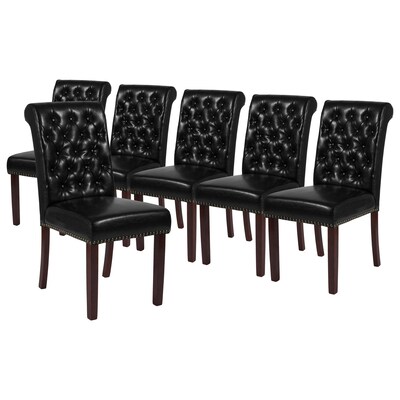 Flash Furniture Midcentury LeatherSoft Parsons Dining Chair, Black, 6 Pack (6BTPBKLEA)