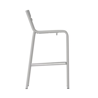 Sleek modern style is upwardly mobile and affordable with this set of 2 modern commercial grade armless stacking stools. The slatted, contoured design of the back and seat aids with airflow and water drainage for comfort and quick turnaround. The armless design allows this metal stool to slide completely pub height tables. These steel stools boast powder coated frames that are UV and weather resistant and hold up to 300 lbs. static weight per chair. With a recommended stack height of 6 stools, these bistro bar stools wipe clean with a damp cloth for quick easy cleanup. These stools ship fully assembled for instant use right out of the box. Protective floor glides keep your indoor flooring surfaces free from damage. Available in multiple colors, pair these dining stools with our metal chairs for a cohesive look throughout your home or business.
