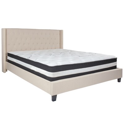 Flash Furniture Riverdale Tufted Upholstered Platform Bed in Beige Fabric with Pocket Spring Mattress, King (HGBM36)