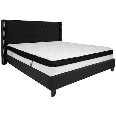Flash Furniture Riverdale Tufted Upholstered Platform Bed in Black Fabric with Memory Foam Mattress, King (HGBMF40)