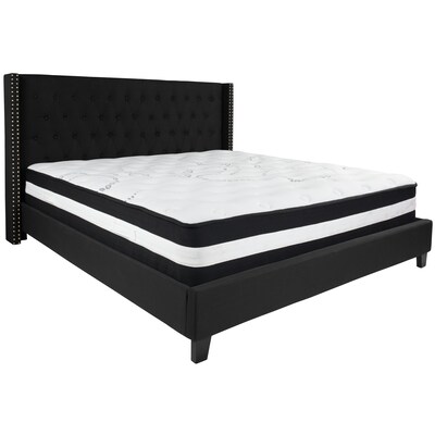 Flash Furniture Riverdale Tufted Upholstered Platform Bed in Black Fabric with Pocket Spring Mattress, King (HGBM40)