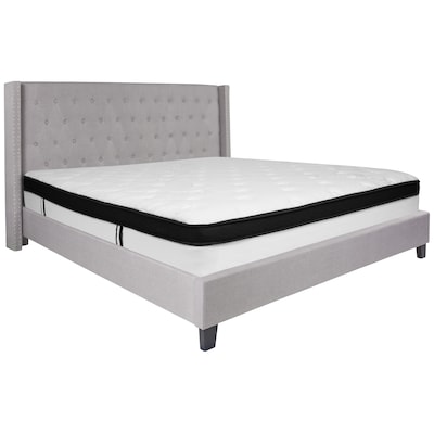 Flash Furniture Riverdale Tufted Upholstered Platform Bed in Light Gray Fabric with Memory Foam Mattress, King (HGBMF44)